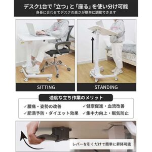 昇降式なのでこのデスク一つで立ち作業にも座り作業にも対応できます。 座ることに疲れたら、デスクを引き上げて立つことで、体勢を変えて作業ができます。