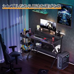 ヘッドホンホルダー、ドリンクホルダー、モニター台が付いておりシンプルデスクとは違い、元から完成しているデスクになります。ゲーミングデスクですが、普段のデスクワークとしても使うことができます。