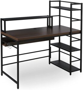 デスク周りに収納が必要で部屋をオシャレにしたい方におすすめのラック付きシンプルデスク。