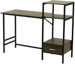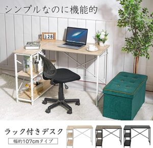 一般的なシンプルなデスクは數納が付いていませんが、こちらのデスクはラック、収納が付いています。ラック、収納が付いているとデスク周りに必要なものをしまって置けるのでいちいち他の場所にある収納から取ってきて席に戻る必要がなので効率よく作業ができます。